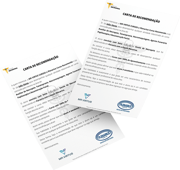Sim, o treinamento conta com uma carta de recomendação para os alunos atestando seu êxito na conclusão do curso da Escola de Necropsia em parceria com a Escola Plenarius.